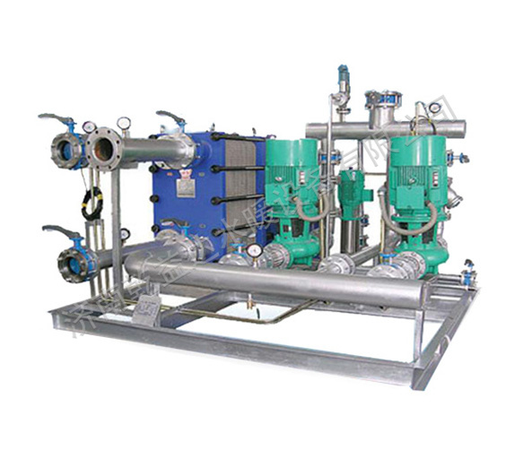 工作原理蒸汽或高溫水在溫控閥控制下,按供熱系統(tǒng)所需流量送入板式換熱機組,換熱器以間...